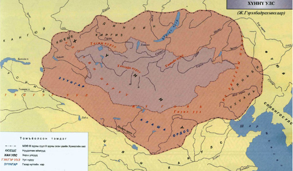 НТӨ 209 онд Хүннүгийн анхны төр улсыг Түмэн байгуулсан бөгөөд дараа нь түүний хүү Модун (209-174 он) эцгээ зайлуулан шаньюй болжээ. Шаньюй гэдэг нь эртний хятад хэлээр “өргөн уудам” гэсэн утгыг илэрхийлэх боловч монгол хэлний “сайн” гэдэг үгийн эртний дуудлага гэж судлаачид үздэг ажээ. Модун нүүдэлчдийн нийгмийн ба цэрэг, засаг захиргааны шинэчлэл хийж, аравт, зуут, мянгат, түмтийн тогтолцооноос бүрдсэн хүчирхэг армийг Төв Азийн түүхэнд анх удаа байгуулжээ.