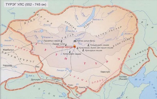 НТ YI зууны үед Алтай орчмоор нутаглаж байсан Түрэг угсааны аймаг Орхон, Туулын сав газарт нүүдэллэн ирж 552-745 оны хооронд Түрэг улсыг байгуулан оршжээ. Түрэг нь өмнө талдаа Тан, зүүн талдаа Хятан, хойд талдаа Окуз гэх мэт олон дайсантай учирч Киргиз, Тардуш, Согд зэрэг олон улстай удаа дараагийн аян дайн хийж гарч ирсэн улс юм. Анхны хаан нь Буман бөгөөд Жужаны харъяанд байсан олон овог аймгийг нэгтгэн Түрэгийн хаант улсыг үндэслэжээ. 590 онд Түрэг улс нь зүүн, баруун болон хуваагдаж зүүн нь Теле, баруун нь Тардуш гэж нэрлэгдэн, бүх иргэдээ хоёр үндсэн ангилалд хувааж жирийн иргэдийг “хар бүдүүн”, нөгөө хэсгийг “хөх түрэг” буюу “тэнгэр язгууртан” гэж нэрлэжээ.