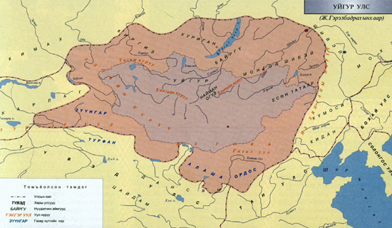 Түрэг улсыг мөхсөний дараа түүний байр суурийг Уйгарууд эзэлж YIII-IX зууны үед монгол нутагт оршин тогтнож байв. НТ 740 оны үед Түрэг улсын захиргаанд байсан уйгарууд бослого гарган өөрийн улсыг байгуулан 100 орчим жил оршин тогтносон. Уйгарын оршин сууж байсан газар нь хуучин хүннү, түрэгийн нутаг байжээ.