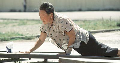 хүргэж мөргөх үедээ толгой дээрээ алга хавсрах бөгөөд дух магнайгаа газар