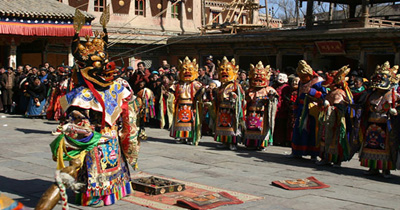 magnificently ornamented costumes. The "Tsam" dance ceremony was