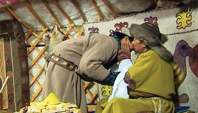 Айлд суудал барих: Гэрийн баруун дээд талд зочдод зориулсан олбог, суудал байдаг. Өрхийн тэргүүлэгчээс зочид ахмад бол баруун дээд талын ил суудалд, үе тэнгийнх бол баруун талд, дүү насных бол баруун өмнө чигт сууна. Зочин эмэгтэй гэрийн эзэгтэйгээс эгч бол түүний дээд талд, дүү бол доод талд нь суудаг ёстой.