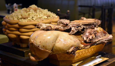 Ууц хөндөх: Ширээнд махыг тавихдаа уламжлан ирсэн ёс заншлын дагуу тавина. Бүхэл мах тавихад хонь амьд ахуйдаа ямар байснаар нь эрэмбэлж урд доор нь хүзүү, сээр, хоёр хааг нь, хойт доор нь хоёр гуяны шаантыг урагш харуулан мөчнүүдийг нь яг хэвтэж байгаа юм шиг байрлуулан, дээрээс нь ууцаараа бүтээж, хамгийн дээр нь толгойгоо тавьдаг. Махны эх талыг зочин тийш харуулж засна. Зочин толгой талаас нь барьж хажуулдан огтолж идэх ёстой. Битүүний орой гэрийн эзэн есөн хөндлөнг (толгой, хошуу, хоёр эрүү, хоёр чих, ууцны хоёр тал) хөндөж галдаа өргөдөг. Дараа нь бурхандаа өргөөд гэрт байгаа хүмүүстээ тарааж өгнө. Ууцыг зөвхөн гэрийн эзэн буюу хүндэт зочин хөнддөг заншилтай. Шүүсэнд хүрч хөндөхдөө ууц сүүлний голд нэг, дараа нь олон ясны уулзвараас харцаганы хоёр зураа дагуу гурав зүснэ. Дараа нь харцага талын ирмэгээс хоёр зүсэж дээжсийг нэгтгэн галын бурханд хувь болгодог. Зочин хүн олуул яваа бол ахмад нь ууцанд хүрч хөндөөд бусдадаа хувь өгч ёс гүйцэтгэнэ. Ингэхдээ ихэд хүндэтгэл үзүүлэн хишгийг хоёр гараараа өгч авдаг.
