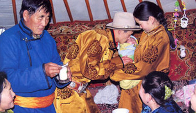 ахмад настанд хадаг барьж нэр хайрлахыг хүсдэг. Шинэ хүүхдийн эцэг эх өөрсдөө
