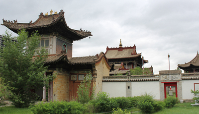Анхдугаар богд Г.Занабазарт зориулан барьсан Энх амгалангийн сүм: Сүмийн хойморт Г.Занабазар өөрийгөө дүрслэн хийсэн баримал, хоёр талд нь Аюуш бурхан, Бурхан багш хоёр шавьтайгаа заларсан байдаг. Дээд талд нь Насны гурван шүтээний цаасан шуумал байдаг бол сүмийн голоор Өндөр гэгээн Г.Занабазар, түүний шавь нарын урласан бурхдын баримал, хятад, түвд хийцийн баримлууд, япон хийцийн Богд Зонховын баримал, Өндөр гэгээний өөрөө авчирсан энэтхэг хийцийн “хүрэл суварга” гэх мэт ховор нандин үзмэрүүд бий. Сүмийн эргэн тойрон хананд 16 найдан шавь нараар төлөөлүүлэн хүний 16 зан чанарыг харуулсан ууртай, тайван, харамч, уйтгартай, залхуу, энэрэнгүй, зальтай, ажилсаг, хөгжилтэй, бялдууч, сайхан сэтгэлтэй гэх мэт Найдан бурхадын цаасан шуумал бүтээлүүд байдаг.