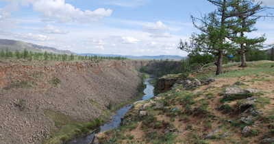 Сайрын булангийн хэсэгт буга харваж буй анчид, дээрээс харсан байдлаар олон аргал хонь, хоёр гараа дээш өргөсөн хүнийг ан амьтны хамт, хоёр гараа өргөж хөхөө унжуулан сөхрөн суусан хүн зэргийг зуржээ.
