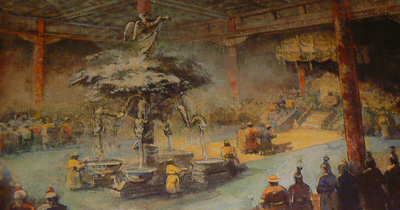 хамгаалагч бурхан болох 4 яст мэлхий байсан бөгөөд тэдгээр мэлхийн дээр эзэнт