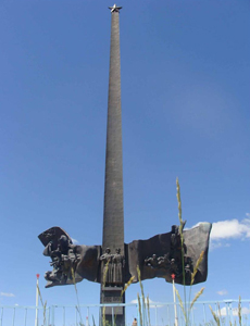 Монгол, Зөвлөлтийн баатарлаг дайчдын мөнхийн гавъяат үйлсэд зориулан Халхголын ялалтын 45 жилийн ойг тохиолдуулан 1984 онд Хамар даваанд энэ хөшөөг босгосон юм. Хөшөө нь 54 метр өндөр, 33 метр өргөн, 110 тонн жинтэй, дан аранжин зэсээр хийжээ. Эл хөшөөг ЗСБНХУ-ын социалист хөдөлмөрийн баатар, Төрийн шагналт, Москва хотын алдарт уран барималч, ЮНЕСКО-гийн шагналт А.Н.Бурганов, архитекторч Л.В.Сиожников нарын төслөөр байгуулжээ. Монгол-Зөвлөлтийн ах дүү армиудын баатарлаг ялалтад зориулан энэ хөшөөг бүтээсний учир А.Н.Бурганов, Л.В.Мисожников, Монголын архитекторч Д.Чойжилжав нарыг 1986 онд БНМАУ-ын Төрийн шагналаар шагнасан юм.