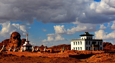 Говийн догшин ноён нутагт Данзанравжаа Ханбогд хайрханы дэргэд 7 хоног бясалгал үйлдээд 30 хоног мориор давхиж нутаг