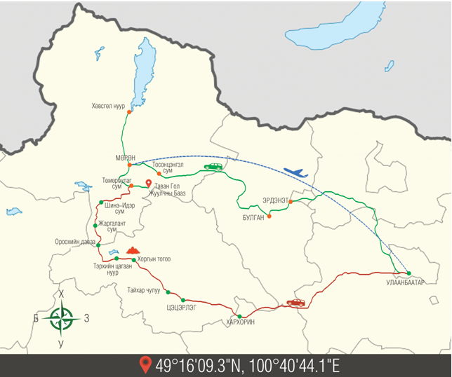 Хөвсгөл аймгийн Мөрөн хотоос урашг Төмөрбулаг сумын Төвийг дайран нийтдээ 110 км замыг 2 цаг машинаар туулсаны эцэст Олон голын бэлчирт байрлах "Таван гол" жуулчны баазад хүрнэ. Мөн дотоодын Улаанбаатар-Мөрөнгийн чиглэлийн нислэгээр ирсэн тохиолдолд Мөрөн хотын нисэх буудлаас тосох болон хүргэж өгөх боломжтой.