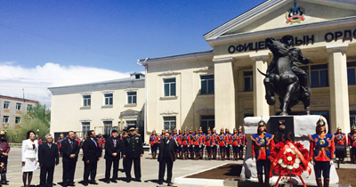 “Улаан армийн ордон” нэртэй анх байгуулагджээ. Тухайн үед үүдэнд нь Сталины хөшөө байдаг байсан. 1992 онд Монголын Ардын Армийн Ордон болсон бөгөөд Сталины хөшөөг буулган, Халх голын тулалдааны үеэр гарамгай байлдаж “алаг морьтой баатар” хэмээн алдаршсан Улсын баатар Дандарын хөшөөг босгожээ. Хөшөөний эх загварыг уран барималч Цэгмид хийсэн бөгөөд 1999 онд зэсээр урлан бүтээжээ.