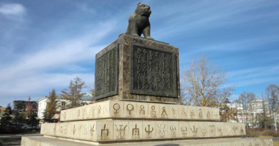 ордны хойд цэцэрлэгт Монгол төрийн үе үеийн тамганы дардасыг агуулсан Тамганы