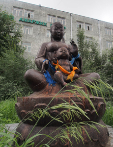 хүрсэн түүхэн үйл явдалд зориулж уран барималч Г.Баатарцогтын гаргасан эх загвараар зэс хөөмөл бүтээл болгож хийсэн. Бадамлянхуа цэцгэн дээр хүүхдээ тэвэрч сууж буй
